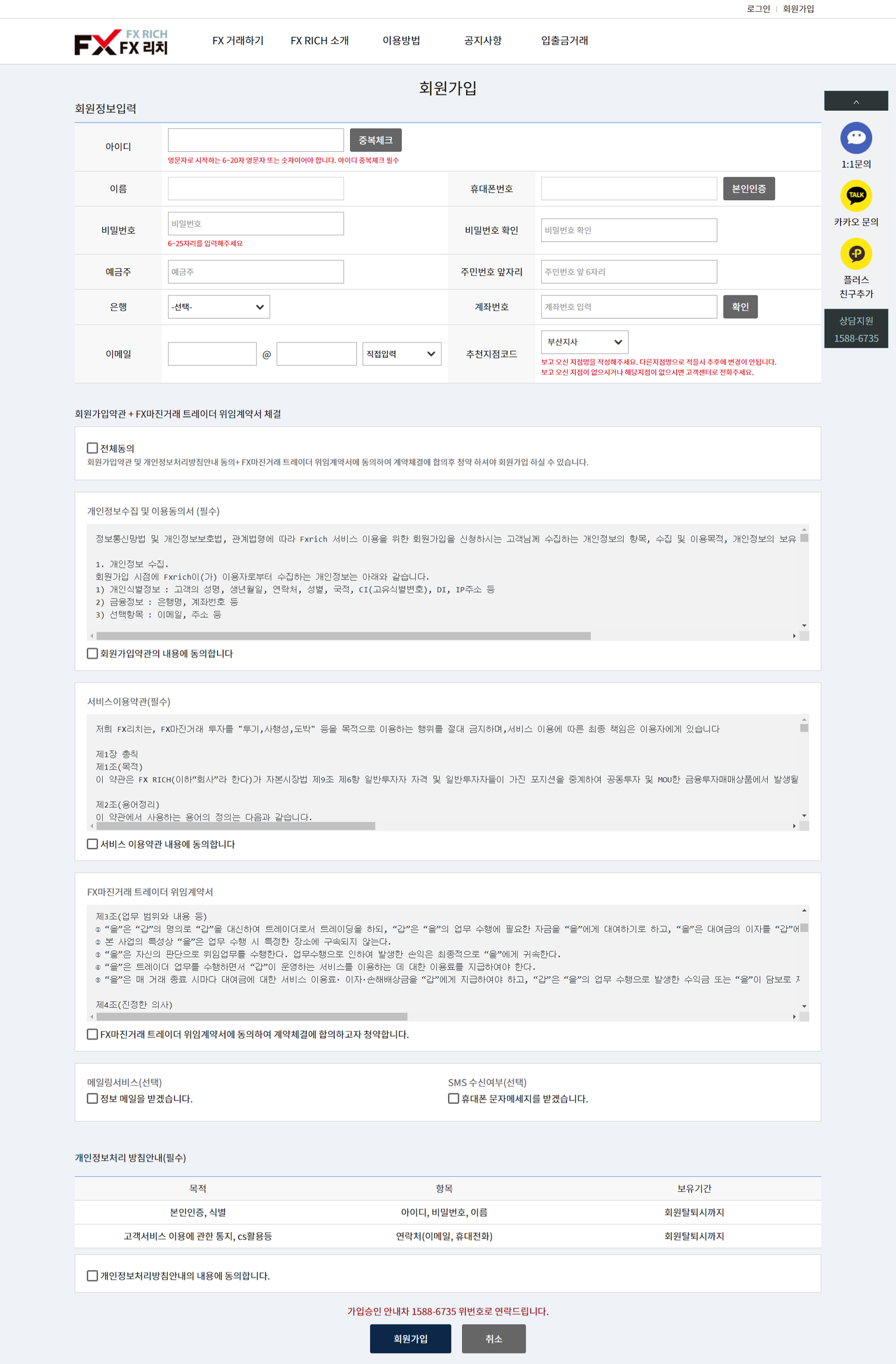 FX마진거래를 위한 각종 동의 사항에도 동의를 해주셔야 하구요.